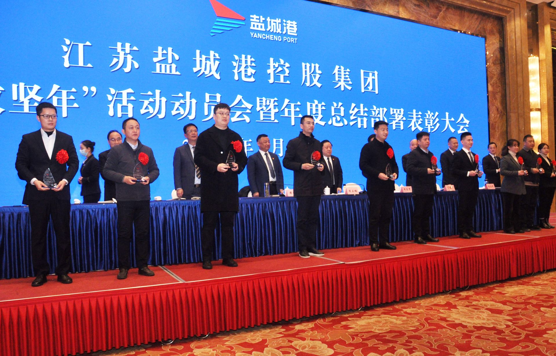 會議為2021年度集團受表彰的先進集體、先進個人、卓越工匠以及營銷標兵代表進行了頒獎,大豐海港控股集團、濱海港開發集團、國際陸港集團、項目建設管理公司、集團企業管理部分別圍繞主題作了表態發言。