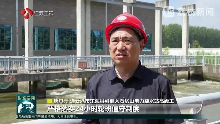 連云港市東??h引淮入石房山電力翻水站高級工唐其亮說:“嚴格落實24小時輪班值守制度,確保設備安全高效運轉,讓寶貴的水資源持續流入沭南灌區,有效緩解當前緊張用水壓力?!?/p>