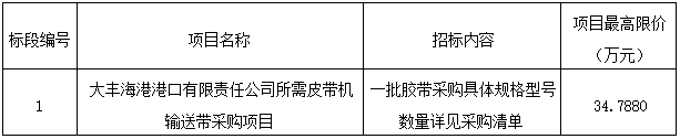 (1)項(xiàng)目名稱(chēng):大豐海港港口有限責(zé)任公司所需皮帶機(jī)輸送帶采購(gòu)項(xiàng)目