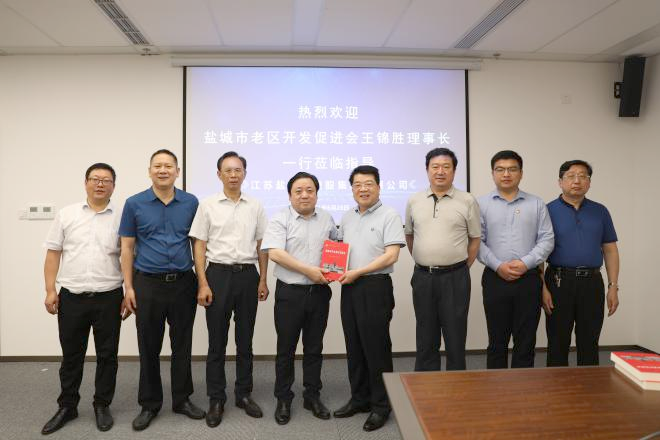 6月28日下午,市老區開發促進會理事長王錦勝率隊來集團考察指導,向集團贈送《鹽城市革命老區發展史》系列圖書。集團黨委書記、董事長、總經理周正雄參加并介紹了鹽城港成立一年來的整合、磨合和融合發展情況。集團黨委委員、董事、副總經理陳正華等參加。