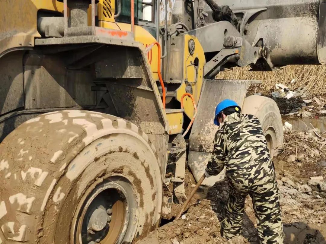 4月2日上午,響水港區A3310裝載機在清理港區生活區旁空地清理廢棄物時,突然遭遇作業場地塌陷,自重負荷近27噸裝載機陷入淤泥中無法脫困。事件發生后,現場司機立即向當班調度進行匯報,險情就是命令,調度接到匯報后第一時間來到現場進行實地勘察。