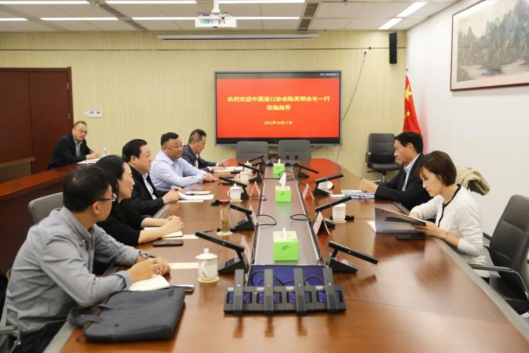 10月11日,中國港口協(xié)會(huì)常務(wù)副會(huì)長(zhǎng)陳英明率隊(duì)來我集團(tuán)進(jìn)行調(diào)研,集團(tuán)黨委書記、董事長(zhǎng)周正雄接待陳英明一行。中國港口協(xié)會(huì)副秘書長(zhǎng)顧寅,集團(tuán)黨委委員、紀(jì)委書記周旭東,集團(tuán)副總經(jīng)理袁欣,集團(tuán)總經(jīng)理助理孫永峰等參加。