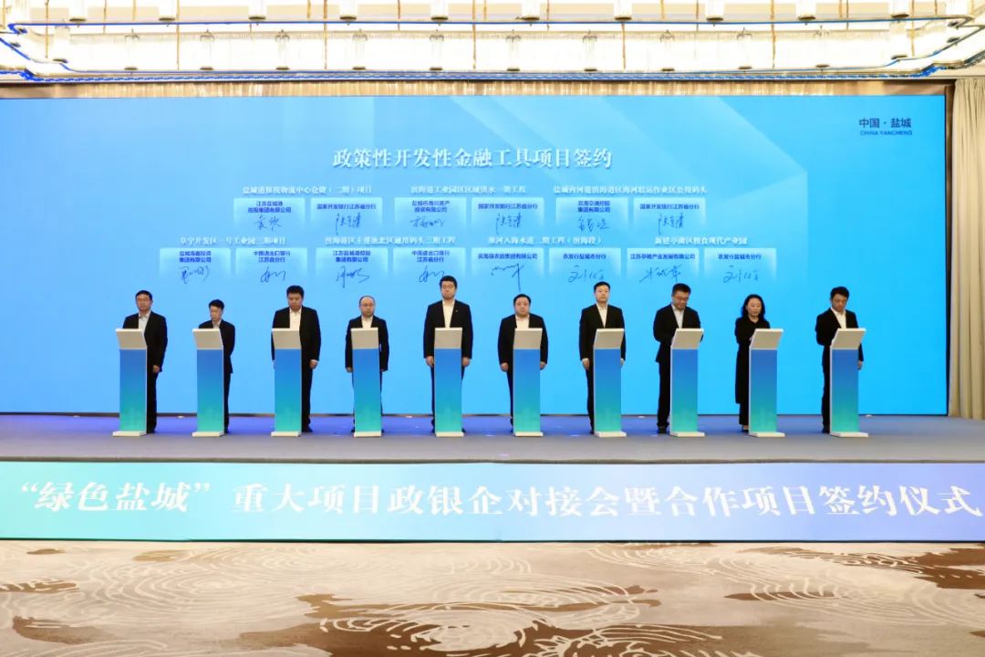 11月8日上午,我市舉行“綠色鹽城”重大項目政銀企對接會暨合作項目簽約活動。集團黨委書記、董事長周正雄,集團副總經理袁欣參加政策性開發性金融工具項目簽約儀式,就濱海港區主港池北區通用碼頭三期工程、鹽城港保稅物流中心倉儲(二期)項目,分別與中國進出口銀行江蘇省分行、國家開發銀行江蘇省分行進行簽約。