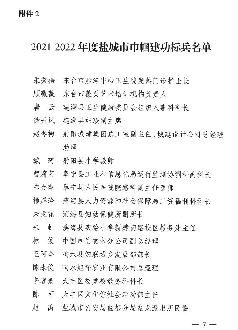????近日,市城鎮婦女“巾幗建功”活動領導小組、市農村婦女“雙學雙比”競賽活動領導小組、市婦女聯合會聯合發布《關于命名2021-2022年度全市城鄉婦女崗位建功先進集體(個人)的決定》,鹽城港智慧港口公司海燕班組榮獲“2021-2022年度鹽城市巾幗文明崗”榮譽稱號,鹽城港項目建設管理咨詢公司黨總支書記、執行董事、總經理劉春燕榮獲“2021-2022年度鹽城市巾幗建功標兵”榮譽稱號。