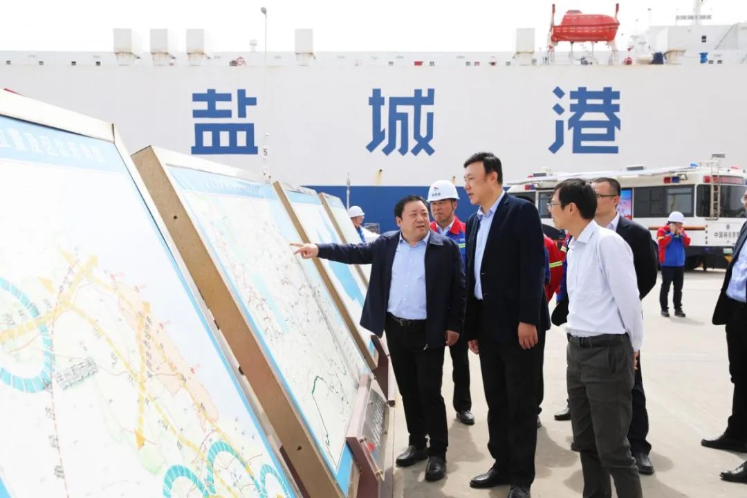 在鹽期間,丁慶領一行實地調研了大豐港區滾裝碼頭,詳細了解相關方面情況。