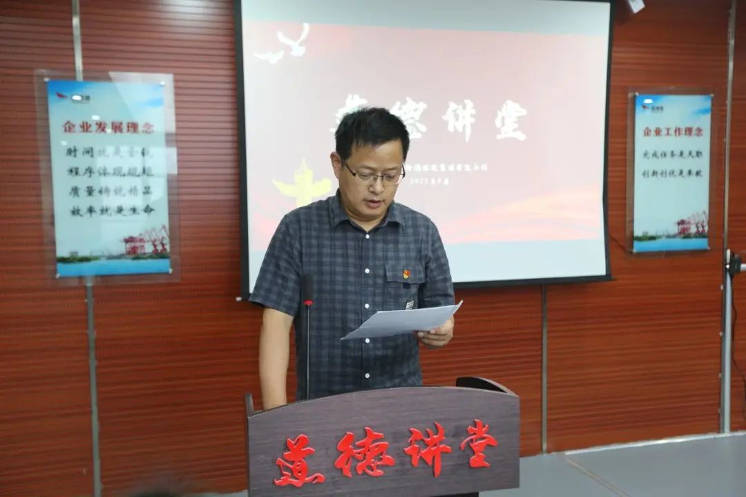 8月27日,大豐港區開展道德講堂活動,大豐港集團黨委委員、董事陸峰主持,集團工會、黨群工作部相關人員,各公司工會副主席、優秀職工代表,各公司子女參加高考的職工代表參加。