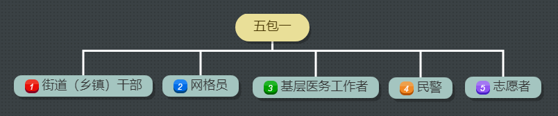 3.社區防控“五包一”:1名街道或鄉鎮干部、1名社區網格員、1名基層醫療衛生機構服務人員、1名社區民警、1名及以上志愿服務者,開展社區防控工作。