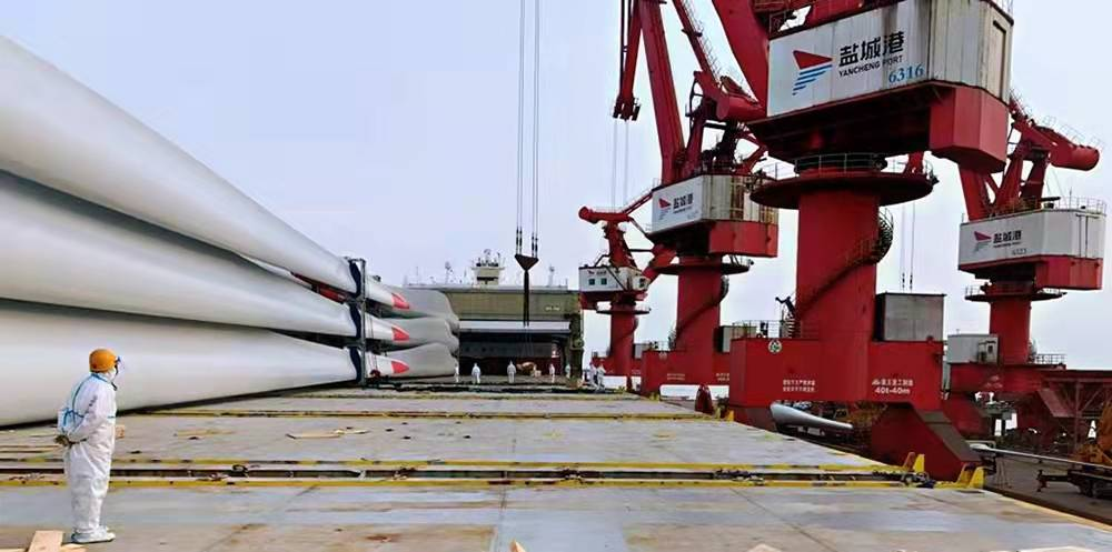 自大件班組組建以來,王靜一直刻苦學(xué)習(xí)大件吊裝相關(guān)知識。2016年5月,中遠(yuǎn)航運(yùn)“大昌輪”靠泊通用碼頭,他參與現(xiàn)場指揮,整船承運(yùn)風(fēng)電設(shè)備8.5萬方,創(chuàng)造了當(dāng)時世界重吊船和多用途船承運(yùn)風(fēng)電設(shè)備單船貨量最大和總體積最大的“世界紀(jì)錄”。2018年12月,至憲公司風(fēng)電出口項(xiàng)目,他參與制定裝卸工藝并現(xiàn)場指揮,單船裝載156件風(fēng)電葉片12萬方,再次刷新全球單船裝載葉片總件數(shù)和總方數(shù)的“世界紀(jì)錄”,為鹽城沿海發(fā)展和風(fēng)電產(chǎn)業(yè)增添了濃墨重彩的一筆。多年來,通用碼頭分公司重大件組攻堅(jiān)克難,規(guī)范裝卸,一直保持零貨損、零投訴的良好成績,并且不斷刷新“世界紀(jì)錄”,成為國內(nèi)同行業(yè)的標(biāo)桿,為公司的發(fā)展作出了巨大貢獻(xiàn)。