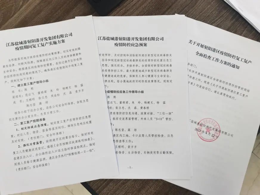 射陽港區(qū)堅(jiān)決貫徹執(zhí)行“三位一體”管控的總體要求,在復(fù)工復(fù)產(chǎn)前,邀請第三方專家會(huì)同各部門對港區(qū)進(jìn)行一次全面的安全、環(huán)保、疫情防控大檢查,對檢查出的隱患立行立改,落實(shí)專人跟蹤進(jìn)行閉環(huán)整改落實(shí),確保復(fù)工復(fù)產(chǎn)、疫情防控安全穩(wěn)定。