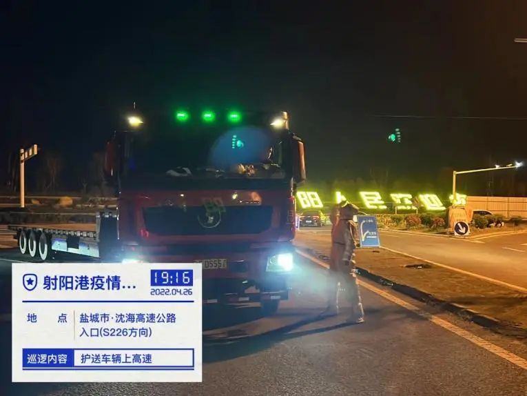 4月26日,接到客戶運(yùn)輸車輛到達(dá)射陽高速出口檢查點(diǎn),請求協(xié)助的電話后,港區(qū)立刻成立專項(xiàng)小組穿戴好防護(hù)服至高速口開展全程配套服務(wù),及時(shí)將運(yùn)輸車輛引導(dǎo)到港區(qū)。