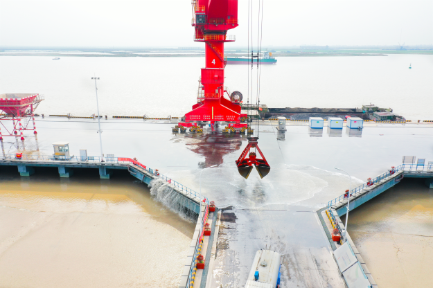 隨著潮起潮落裝卸貨物