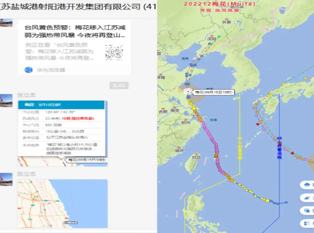 射陽港區(qū)安全環(huán)保部時(shí)刻關(guān)注臺風(fēng)動(dòng)態(tài),加強(qiáng)臺風(fēng)預(yù)報(bào)預(yù)警,實(shí)時(shí)發(fā)送臺風(fēng)路徑,及時(shí)啟動(dòng)防風(fēng)防臺應(yīng)急響應(yīng),做好預(yù)警響應(yīng)聯(lián)動(dòng)與臨災(zāi)“叫應(yīng)”機(jī)制,確保港區(qū)平安。