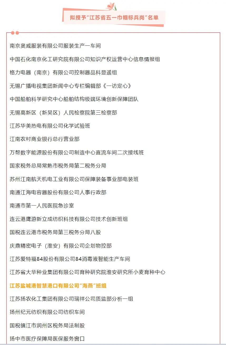 “江蘇省五一巾幗標(biāo)兵”名單公示
