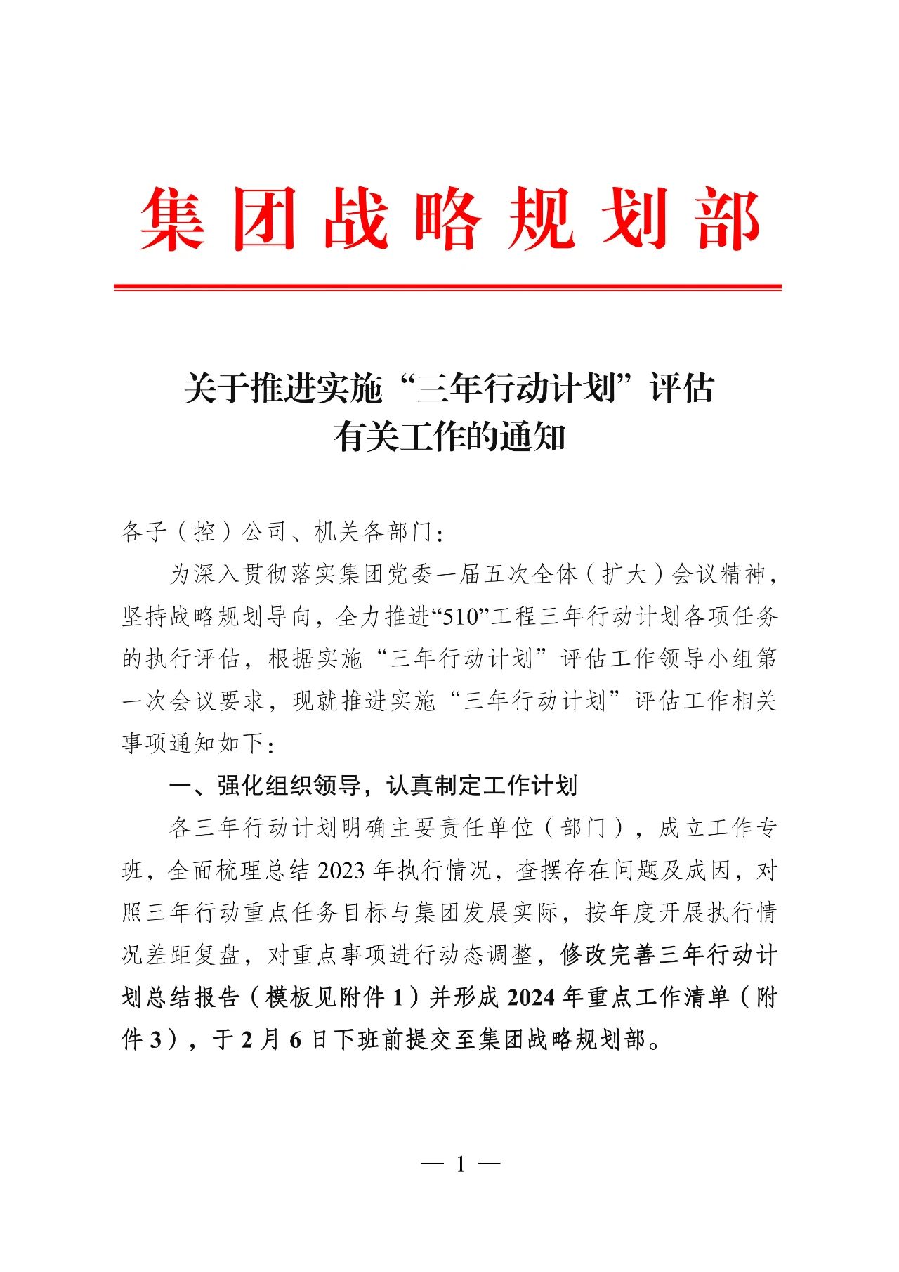 2024年是集團(tuán)全面完成“十四五”規(guī)劃目標(biāo)任務(wù)的關(guān)鍵之年,為深入貫徹集團(tuán)黨委一屆五次全體(擴(kuò)大)會議精神,在三年行動計劃上突出落地見效,以三年計劃的完成保證“十四五”各項目標(biāo)任務(wù)如期實現(xiàn)。“三年行動計劃”評估工作領(lǐng)導(dǎo)小組辦公室緊緊圍繞集團(tuán)三步走戰(zhàn)略發(fā)展總體要求,完善“專班化推進(jìn)+項目化實施”運(yùn)作方式,做好階段性評估,常態(tài)化督查,扎實推進(jìn)“510”工程等三年行動計劃各項工作走深走實。