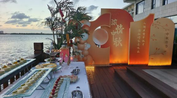 金秋戶外賞月活動現(xiàn)場,酒店精心布置了日月湖畔中庭區(qū)域,如嫦娥奔月的壁畫、玉兔造型的擺件等,綢緞臺面上擺滿了各種精致的月餅、新鮮的水果和香醇的茶點,周圍點綴著璀璨的燈光,處處洋溢著濃厚的節(jié)日氛圍。現(xiàn)場的小游戲環(huán)節(jié),顧客們踴躍參加,更是將整個活動氛圍推向了高潮。