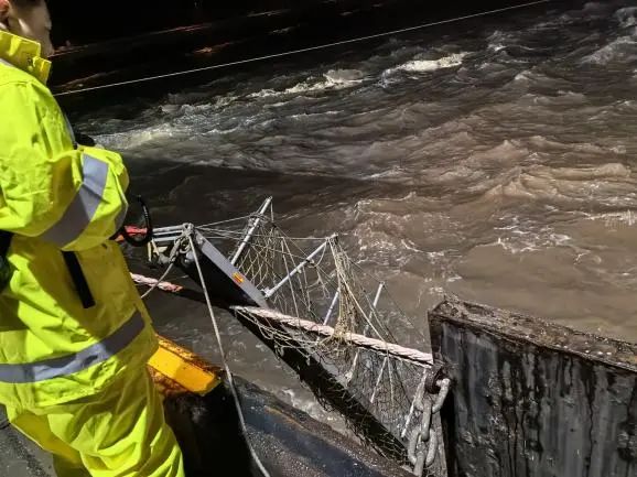 當晚正值農歷大潮汛,東北風6級、涌浪2米的惡劣海況給救援帶來嚴峻挑戰。引航員抵達現場時,“聯盟8”輪船頭僅剩1根倒纜受力,船體與碼頭形成60°夾角持續后漂,且涌浪過大導致無法登輪指揮。面對險情,引航員在碼頭前沿與交管中心協同決策,果斷采取“解尾纜、控船位”的應急處置方案。