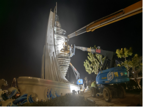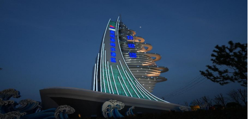 隨著最后一組LED燈光調(diào)試完成,鹽城港響水港區(qū)入口處,一座高17米的藍(lán)白色地標(biāo)建筑正式點亮。這座以“乘風(fēng)破浪”為設(shè)計理念的“精神堡壘”,歷經(jīng)三個月攻堅建設(shè),成為展示港區(qū)形象、服務(wù)城市交通導(dǎo)航的多功能地標(biāo)。