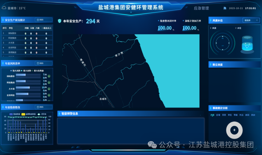 如今,鹽城港集團“平安港”建設成效顯著,響水港區、射陽港區高分通過港口設施保安年度核驗,智慧港口公司順利通過國家級綠色三星港口現場驗收。下一步,集團將持續深化“人防+技防”融合模式,加快“安健環”系統全集團部署,朝著“綠色、生態、智慧、平安、美麗”五新港口建設目標穩步邁進,以高水平安全保障港口高質量發展。