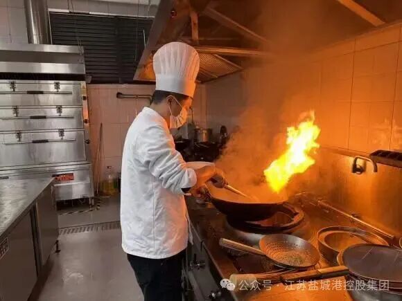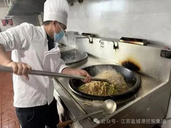 “鍋灶是我的戰場,報表也是我的戰場。讓所有人吃好飯,和做好一道菜,道理是相通的——都要用心。”梅朋朋主要負責湘菜館和大樓食堂事務,他不僅僅是爐灶前顛勺的廚師,更是保障整個湘菜館后廚和大豐港區港航服務中心食堂高效運轉的“關鍵齒輪”;“百日攻堅就是和時間賽跑,我們的任務就是讓大家吃得好、吃得安心,才能干勁十足。”在午餐高峰時段,他一個人能同時照看三口鍋,翻勺、調味、出鍋,動作行云流水。即便汗流浹背,他也從不降低對菜品的要求。