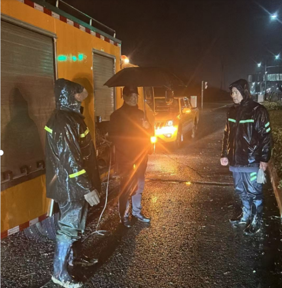 現(xiàn)場(chǎng)指揮與技術(shù)人員冒雨研討,迅速優(yōu)化施工方案,確保各環(huán)節(jié)無(wú)縫銜接。挖機(jī)轟鳴聲中,搶修隊(duì)員跳進(jìn)齊膝深的泥漿中,摸索著查找漏點(diǎn);暴雨如注的深夜里,照明燈下一個(gè)個(gè)躬身忙碌的身影,成了雨幕中最堅(jiān)實(shí)的剪影。從傍晚到深夜,從大雨滂沱到雨勢(shì)漸歇,8個(gè)小時(shí)的連續(xù)奮戰(zhàn),他們未曾合眼、未曾停歇。