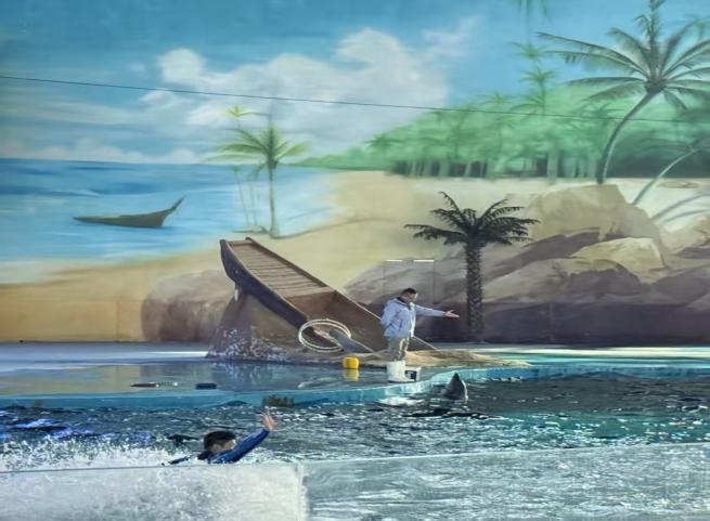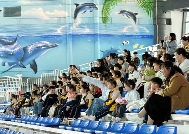 “老師,海豚會不會唱歌呀?”出發前,孩子們的問題就已裝滿一籮筐。帶著滿心好奇,下午時分,隊伍一路歡歌抵達目的地。大手牽小手,小小的身影在海洋樂園前雀躍不止——“哇,這個房子是藍色的,像大海一樣!”“我要去看海豚!”稚嫩的驚嘆聲此起彼伏,瞬間喚醒了整個午后。