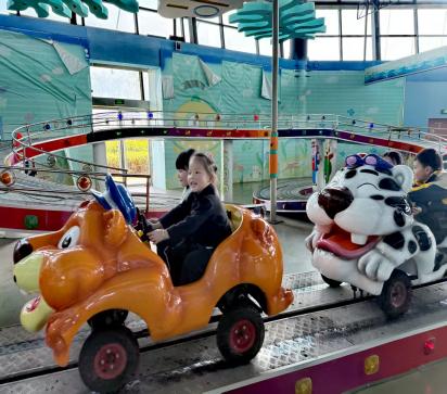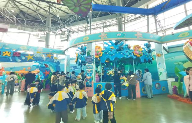 在海洋兒童樂園里,孩子們徹底放飛了天性。海盜船上,有小朋友興奮地喊道:“爸爸,我比你高啦!”,小手一邊緊緊抓著把手,一邊咯咯地笑著。旋轉木馬、小火車、過山車、碰碰車、積木房……家長們或在一旁微笑守候,或參與其中,親子間的默契與溫情,在這一方天地里悄然生長。