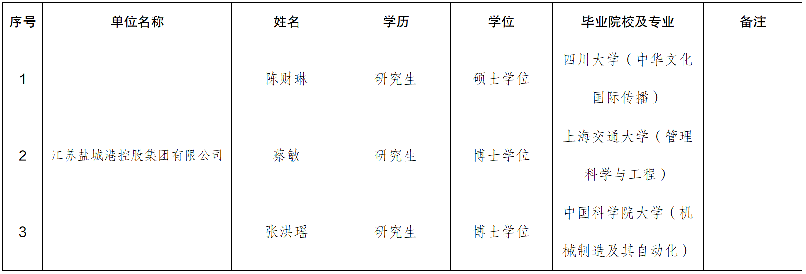 根據江蘇鹽城港控股集團有限公司相關程序規(guī)定,現對3名擬錄用人員進行公示。