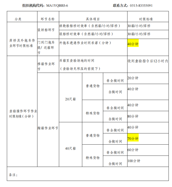 江蘇鹽城港上港國際港務(wù)有限公司作業(yè)時限標(biāo)準(zhǔn)