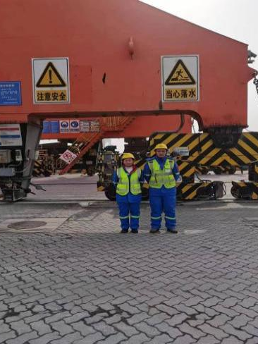 薛干雷和高娟夫妻倆都是濱海港區(qū)6#門機同崗不同班次的操作員,兩人分別于2014年、2019年入職于濱海港碼頭一線。曾在碼頭連續(xù)工作4年的高娟,門機操作業(yè)務嫻熟有致,保暢經(jīng)驗豐富,是大家遇到業(yè)務難題時第一時間想起的“師姐”。而性格溫和的薛干雷在工作上細心嚴謹,處理操作難題穩(wěn)妥有序,是班組現(xiàn)場保暢工作中的得力助手。他們所轄的門機位于1#碼頭最西邊,是歷年來抓挖高效的關鍵站點。為全力保障濱海港區(qū)碼頭吞吐量的有效提升和安全暢通,薛干雷和高娟每年主動放棄節(jié)假日休息時間高達20余個工作日,全身心投入到忙碌的生產(chǎn)保暢工作中去,用愛和堅守共同書寫最美的“敬業(yè)福”。