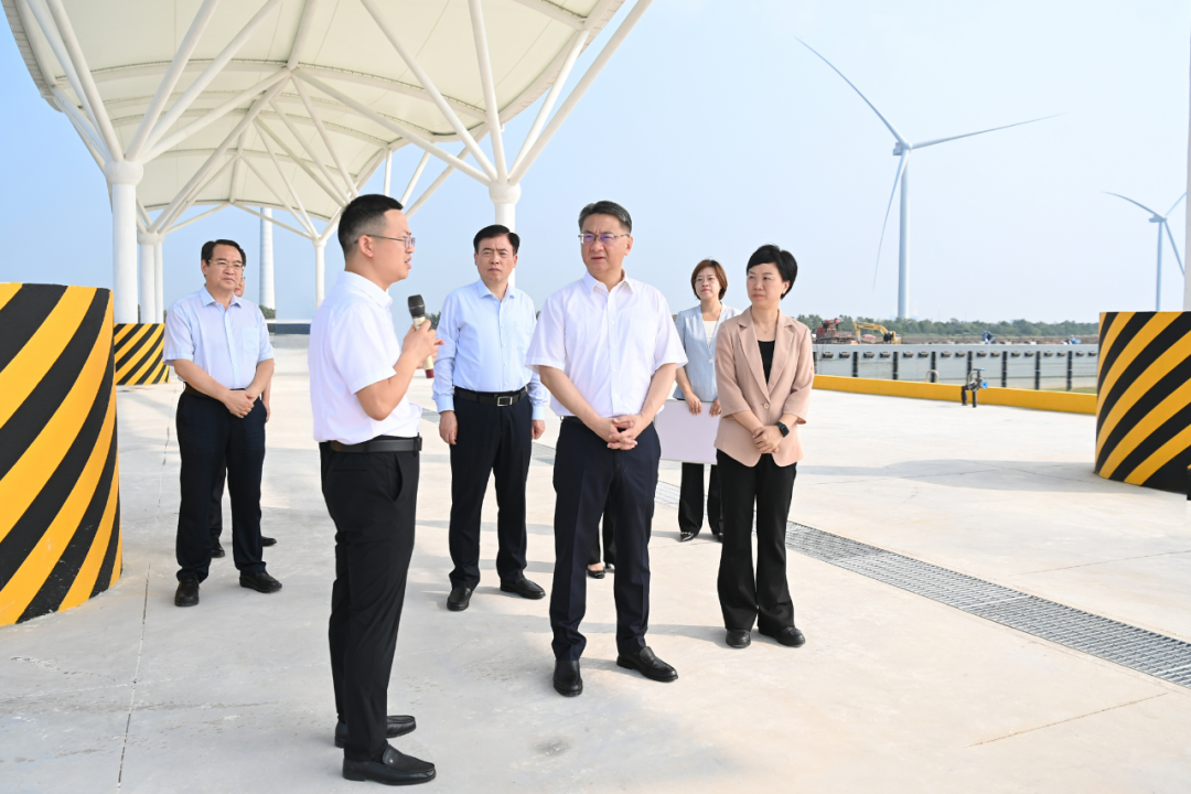 周斌一行首先調(diào)研了我市推進(jìn)海洋經(jīng)濟(jì)高質(zhì)量發(fā)展的項(xiàng)目現(xiàn)場(chǎng)。黃沙港國(guó)家中心漁港二期項(xiàng)目建設(shè)現(xiàn)場(chǎng)機(jī)器轟鳴,施工正酣。周斌了解項(xiàng)目建設(shè)進(jìn)展,要求強(qiáng)化與行業(yè)龍頭企業(yè)合作,加快工程進(jìn)度,深耕海洋牧場(chǎng),做優(yōu)配套服務(wù),加大宣傳推介力度,不斷提升漁港核心競(jìng)爭(zhēng)力。在射陽(yáng)縣沿海治安防控中心,周斌聽取工作介紹,叮囑要強(qiáng)化使命擔(dān)當(dāng),運(yùn)用科技手段,進(jìn)一步加強(qiáng)邊海空防能力建設(shè),為海洋經(jīng)濟(jì)高質(zhì)量發(fā)展保駕護(hù)航。周斌來到中國(guó)質(zhì)量認(rèn)證中心射陽(yáng)分公司,詢問業(yè)務(wù)開展情況,要求公司發(fā)揮好資源優(yōu)勢(shì)、品牌價(jià)值、科研條件等作用,推動(dòng)更多認(rèn)證標(biāo)準(zhǔn)與國(guó)際接軌,持續(xù)放大鹽城綠色發(fā)展優(yōu)勢(shì)。